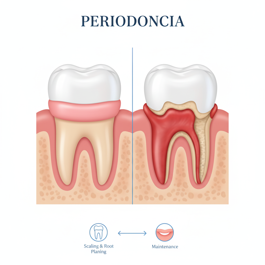 La periodoncia se enfoca en tratar las enfermedades periodontales, principalmente la gingivitis y la periodontitis. Estas afecciones son causadas por la acumulación de placa bacteriana, que si no se elimina, puede provocar inflamación, sangrado de las encías y, en casos avanzados, la destrucción del hueso de soporte, llevando a la movilidad y eventual pérdida de los dientes.